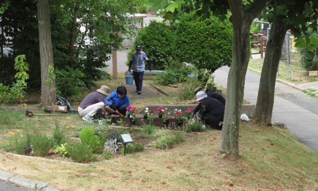 この花壇の花植えが一か月遅れになってしまいましたが、この後、約一か月雨がなく経験したことの無い高温の夏が訪れることになります。私たちのグループでも都合の良い時は水やりしたのですが、連日の猛暑で園の担当者には水やりでお世話になったことに感謝します。