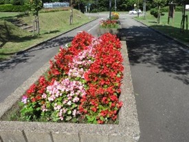 園入り口の花壇は順調に育って見事に咲いてくれていました。ピクニック広場のプルーンの木の下に植えた日々草は、緑の中で鮮やかにワンポイントになっていました。会員のお世話が実ったようです。
