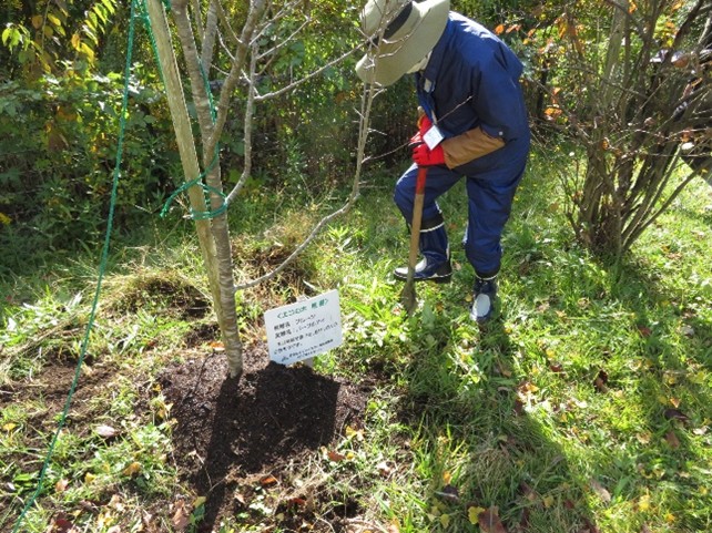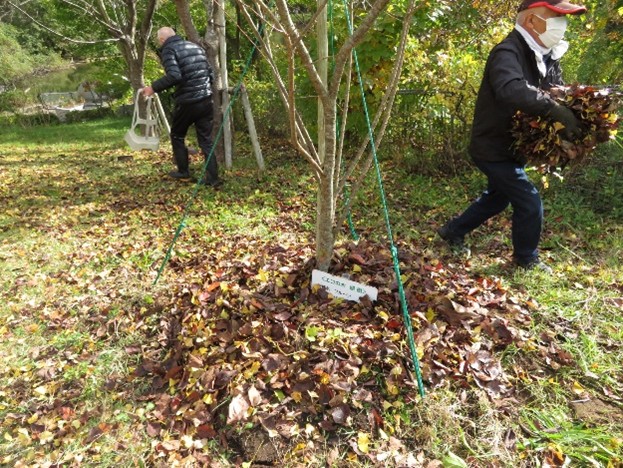 今年は春先の活動の時にピクニック広場のプルーンに初めて花が付いていたことは先に報告しましたが、これがきっかけになり今度はもっと花をつけようと意気込んでいます。そんなことでこれからはできるだけ秋には、落ち葉を集めて根の周りに敷き詰め腐葉土つくりから木育てをしようと思っています。やはり木も土づくりが基本化と思ったところです。木の栄養になるには時間がかかると思いますが、毎年続けられれば良いです。
