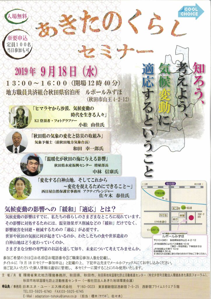 主催/共催 : 環境省東北地方環境事務所、秋田県、秋田市、