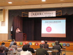 このセミナーは、国連が提唱する「持続可能な開発目標(SDGs)」の理解を社会一般に深める目的で実施しました。東北環境パートナーシップオフィス(EPO東北、仙台市)の鈴木美紀子先生を講師に迎え、SDGsの目標達成のため、日常生活で取り組める環境に優しい行動についての事例を紹介してもらいました。