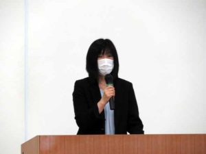 「令和3年度あきたエコマイスター県央協議会通常総会及び環境講演会」が令和3年4月24日に開催されました。本年度の総会はコロナ禍の下での総会でもありましたが、活動の活性化を考える場でもありました。総会には県温暖化対策課の高橋課長、本間班長、環境あきた県民フォーラムの佐藤理事長に来賓としてご出席していただきました。(写真は県温暖化対策課の高橋課長)