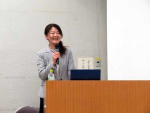 総会終了後、横手市在住の登山ガイドの鶴岡由紀子氏を講師に招き、「登山で楽しくエコ意識を高めよう」と題して環境講演をしていただきました。鶴岡氏からは登山するまでの準備も含め山歩きの楽しさを興味深くお話し頂きました。講演後、機会があれば本協議会会員とともに山で環境美化活動をしてみたいというお話もできました。(写真は鶴岡講師)