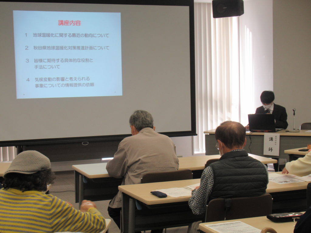令和3年度に新たに推進員になった秋田県地球温暖化防止活動推進員(以下、「推進員」とする)やあきたエコマイスター(以下、「エコマイスター」とする)、地球温暖化防止活動に関心のある一般県民を対象として、基礎研修会を開催しました。
