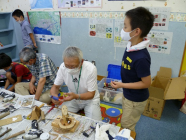 ◇子供たちは土台、流木選びも真剣、後で「あっちの台に交換してもいいですか」と言う子供もいました。