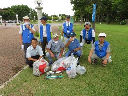 令和3年8月9日(月・祝日)天王の道の駅(天王グリーンランド)を会場にクリーンアップと会員の情報交換会を実施しました。参加者10名。例年、この地域の環境活動は海岸のクリーンアップなどを実施してきていますが、かつては地域会員が精力的に様々活動をこなしてきたということです。このため、地域活動を活性化する一歩として顔合わせを兼ねたクリーンアップを企画したものです。道の駅周辺は清掃が行き届いていましたが、駐車場の植え込みの中にはプラスチックの袋などが散らかっていました。天気にも恵まれ少し汗ばむ陽気でした。作業後、道の駅内に懇談室を借りて意見交換をしました。天王地区周辺では風力発電施設の影響と思われるテレビの電波障害があり困っているという情報などがありました。今日の日をきっかけに、次年度からまた少しずつ活動が充実していけば良いと思います。