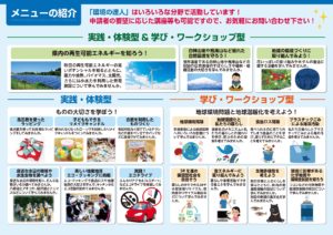 • 秋田県内の市町村、学校、住民団体等が主催する環境に関する講演会・学習会など。