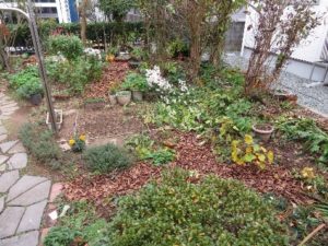 今の自宅の庭は南側の家により半日くらいは明るい日陰となり、山野草の生育には良く合っているようです。更に自然に近い生育ができるように、秋には近所の道路などの落ち葉を集めて庭の通路に敷き詰めて活用しています。一年たった落ち葉は腐葉土化しているので庭に散布します。落ち葉により雑草の発生も少なくなります。土が露出する庭より小さな雑木林が自分にとっては小さな息抜きの場所です。
