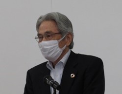 「令和4年度あきたエコマイスター県央協議会通常総会及び環境講演会」が令和4年4月23日(土)に開催されました。本年度も総会はコロナ禍の収まらない状況でもありましたが、活動の継続、意欲を持続する意味からも開催させて頂きました。総会には、来賓としてご出席していただいた県温暖化対策課の田口課長(新任)、環境あきた県民フォーラムの佐藤理事長からご挨拶をいただきました。(写真は、菊地会長、県温暖化対策課の田口課長、環境あきた県民フォーラムの佐藤理事長、議案審議の様子)