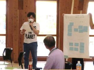 令和4年8月6日(土)県民塾第2日目に「先輩エコマイスターを通じ課題解決の方法を考えよう」と題した講義の講話等を担当しました。当日は菊地会長が講義内容の口火となる協議会活動の概要の報告を行い、その後、当会の副会長3名(神馬、保科、小笠原)がアドバイザーとなり、グループごとの地域課題解決の検討会議が行われました。