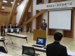 令和4年7月16日(土)令和4年度の「環境あきた県民塾」(県の企画事業。全9回)が開講され、来賓として本会会長の菊地がごあいさつをいたしました。
