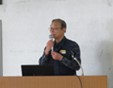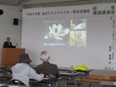 総会終了後、秋田市雄和の秋田県森林学習交流館プラザクリプトンに事務局を置くあきた森づくり活動サポートセンター 総括所長の菅原徳蔵氏を講師に招き、「花と昆虫の共進化」と題して環境講演をしていただきました。菅原氏は現職当時には県の農村整備、土地改良関係の技術者として県内各地の農地整備、農業用水路施設、農道の計画、建設に携われました。本業の傍ら、農村を取り巻く自然環境全般にも目を向けられており、今回は花と昆虫の生存に関わる興味深いお話を伺いました。(写真は菅原氏)