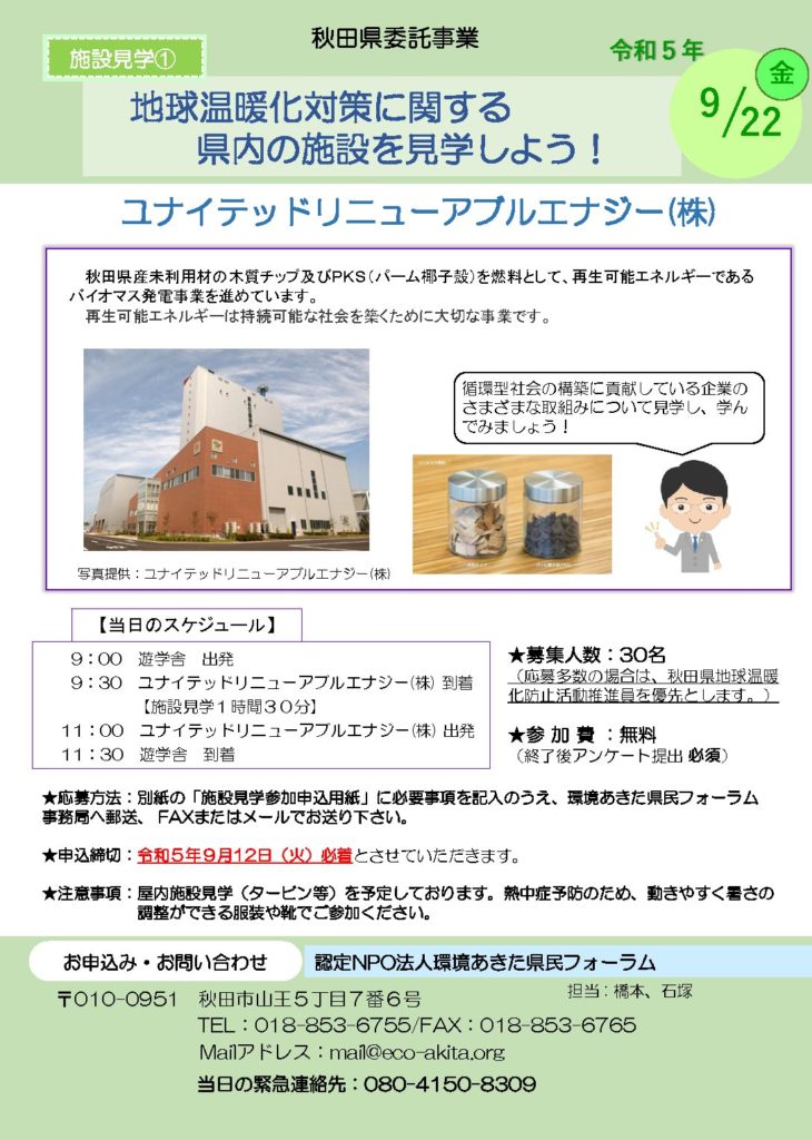 地球温暖化防止対策に関連する施設見学の開催のお知らせ