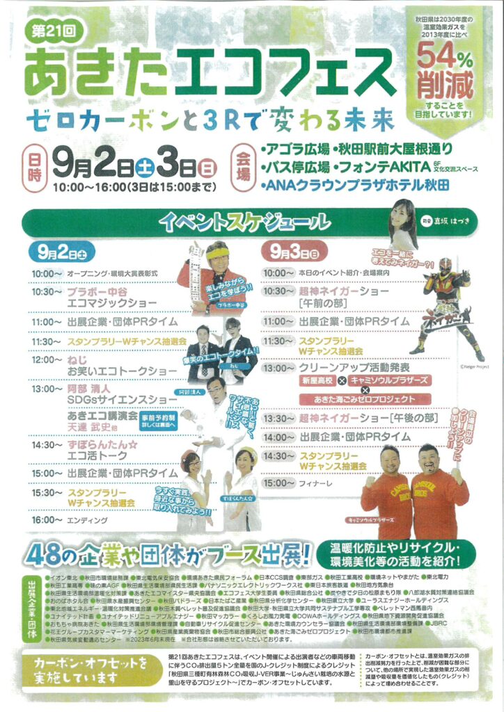 第21回あきたエコフェス開催のご案内(9/2~9/3)秋田駅前