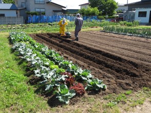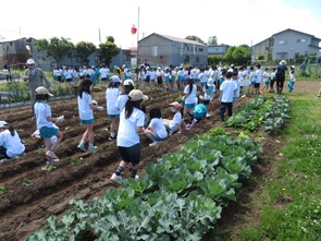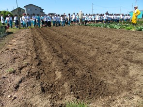 6月5日、春の苗植え付け当日は畝づくりをした後に3年生93人を迎えました。