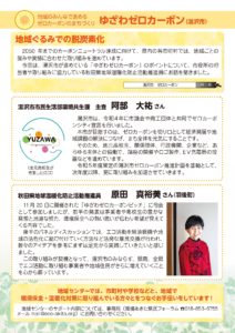 今回のVol.2では、エシカル消費の紹介や、湯沢市でのゼロカーボンに向けた取り組み、秋田県地球温暖化防止活動推進員から寄せられた環境活動への思い等を掲載しています。