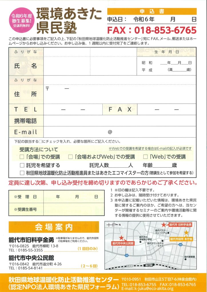 TEL:018-853-6755 FAX:018-853-6765 E-mail:k-juku@eco-akita.org