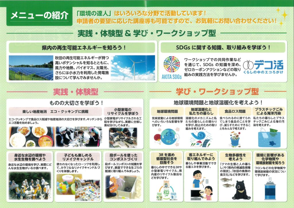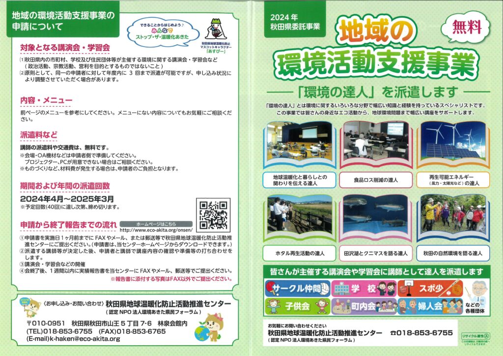 • 秋田県内の市町村、学校、住民団体等が主催する環境に関する講演会・学習会など