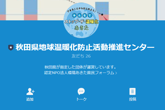 秋田県地球温暖化防止活動推進センターの公式LINEアカウントを開設しました