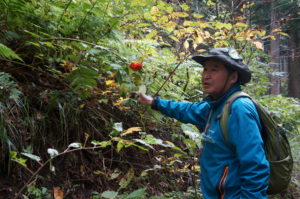 🍂秋田県森林インストラクター会会長の酒井 浩 氏を案内役に迎え、湯沢市にある「やさしい森のポロ」を会場に秋の自然観察会を行った。