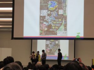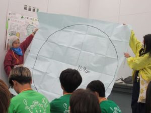 高さ日本一を誇る秋田杉の直径(164㎝)の実物大を模造紙4枚を使用して広げて見せた場面は、会場から歓声があがりました!