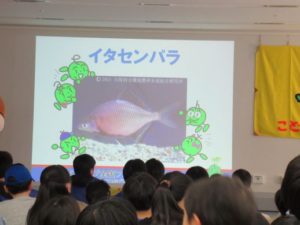 持っている文字を集めて並べ替えるプログラムで、大阪湾に生息している国の天然記念物、「イタセンパラ」が答えでした!