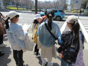 大阪アカデミアから咲州庁舎までの移動の道中にスタッフが立っていて、