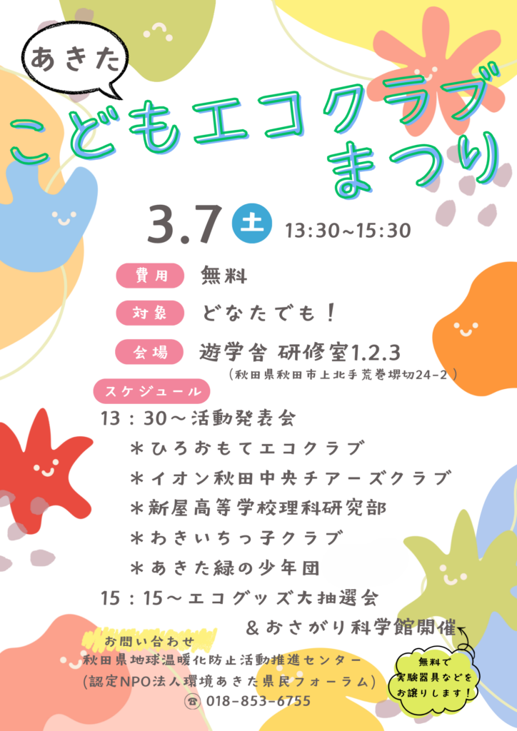 3月7日(土)13:30~遊学舎にて、『こどもエコクラブまつり』を開催します。