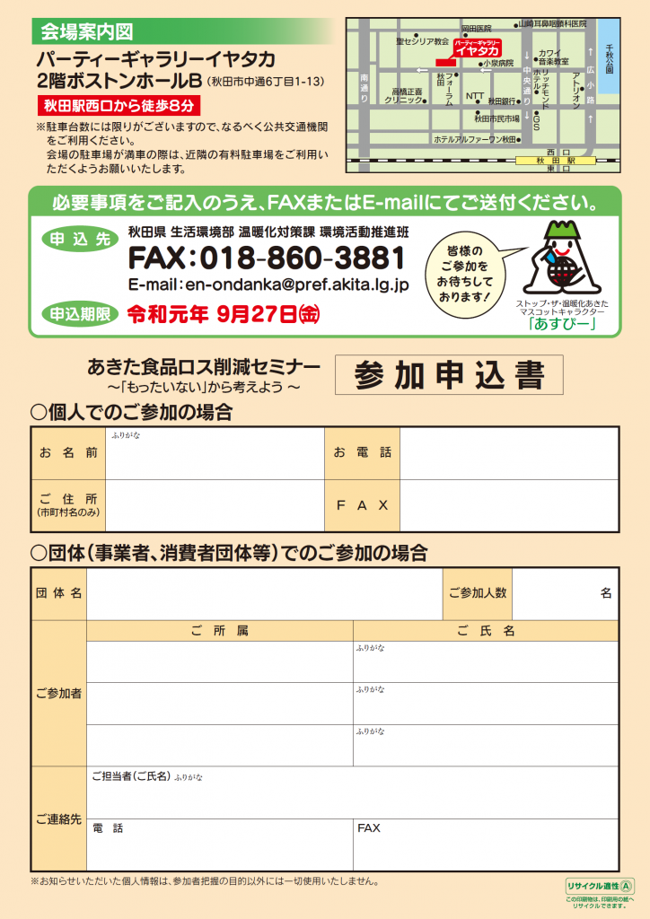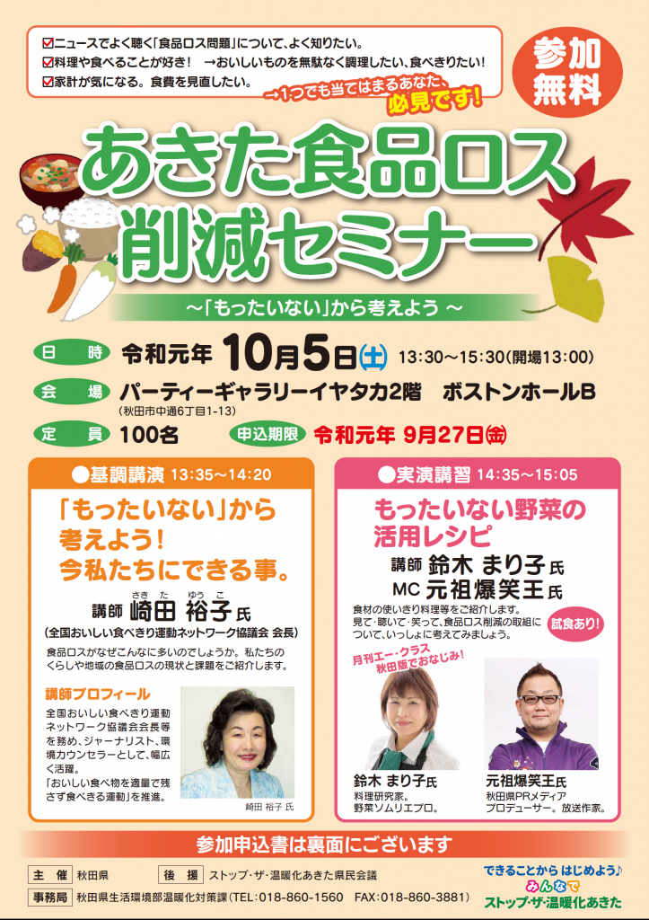 「あきた食品ロス削減セミナー」の開催について(ご案内)