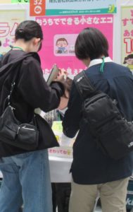 参加者は、エコフェス会場内の出展ブースを巡りながら、環境に関するクイズに挑戦。地球温暖化やゼロカーボン社会の実現に向けた取り組みについて、楽しみながら学ぶことができました。