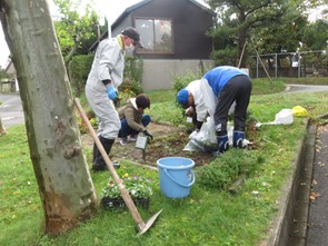 今回10月28日の秋の活動の参加者は5名でした。遠くの高い山では紅葉も進み初雪の便りも聞こえてきます。園内のイチョウなども色着いていました。花壇の苗植えは、今年も来春用のビオラにしました。秋口に雨が多く生育環境が合ったのか春に植えたブルーサルビアの青がきれいに残っていましたが、思い切って新しいビオラ苗に変えることにしました。これからあっという間に冬が近づき残された花は雪の下になってしまいます。