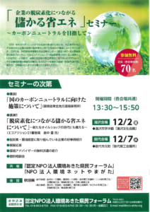 「企業の脱炭素化につながる儲かる省エネ」セミナー(ご案内)