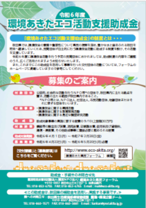 ⇨令和6年度 環境あきたエコ活動支援助成金 募集要項