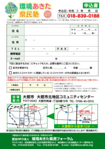 申込書に必要事項をご記入の上、「環境あきた県民フォーラム」宛に郵送、FAXまたはメールでお申し込みください。