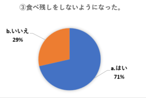 山田小学校の皆さんには後日、ケンタロ先生のお話を聴いて「日常の行動がどのように変化したか」を問う、アンケート調査を行いました。また、能代市役所での講演会にご参加のみなさんにもアンケートにご協力いただきましたので、集計結果を報告いたします。