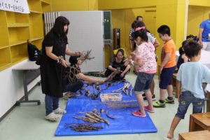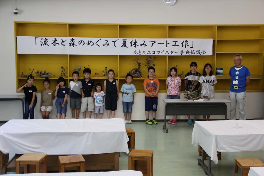 本年度が11回目の子どもエコ学習「流木と森のめぐみで夏休みアート工作」を令和元年8月3日、秋田県児童会館で実施しました。子供16人はじめ全部で40人が参加していただきました。