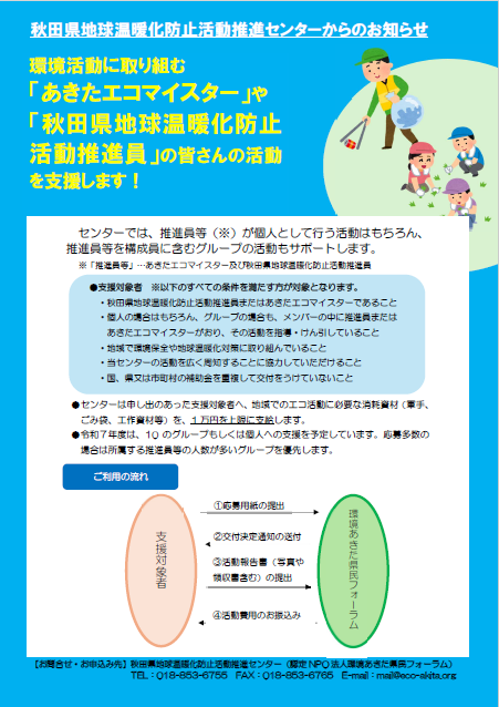 あなたの環境活動を応援します! 【対象:あきたエコマイスター、推進員】