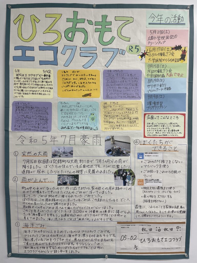 今年は大雨で川に行けませんでしたが、そのことを活かして大雨による川や海への影響や、そのために出来ること、SDGsとの関係をまとめました。