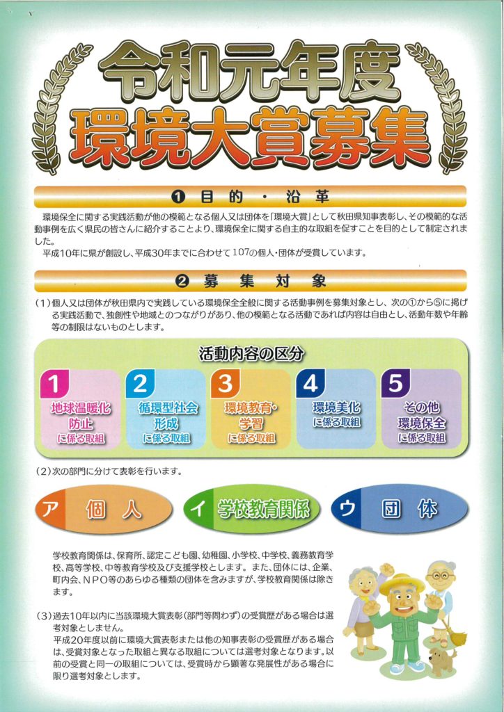 【募集内容・申込み】 こちらから 👉 秋田県(環境大賞募集)
