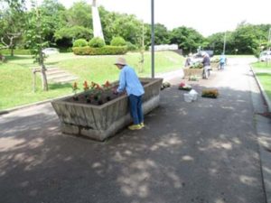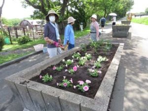 令和7年6月28日(土)に恒例となっている動物園入口花壇と2か所の園内担当花壇の花の植栽を行いました。