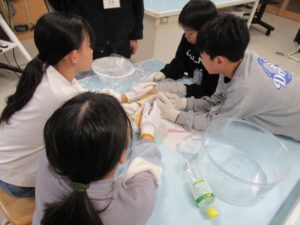 当センターでは、秋田県秋田地域振興局福祉環境部が小学校で実施している環境学習会に参加し、スタッフとしてお手伝いしています。