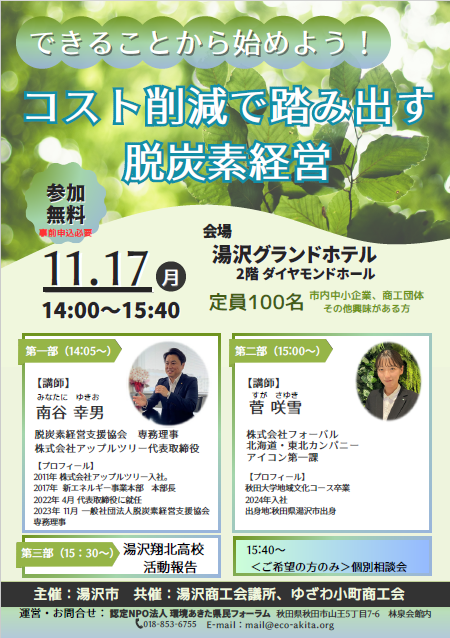 湯沢市セミナー「コスト削減で踏み出す脱炭素経営~できることから始めよう!~」