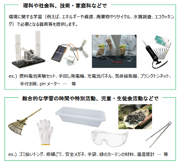 県では、県内の小・中学校、義務教育学校、高等学校、特別支援学校から10校程度を環境教育支援校として指定し、環境教育に必要な器具等の無償提供(2万円程度)等を行うことによって、学校における環境教育・環境学習、環境保全活動を支援しています。