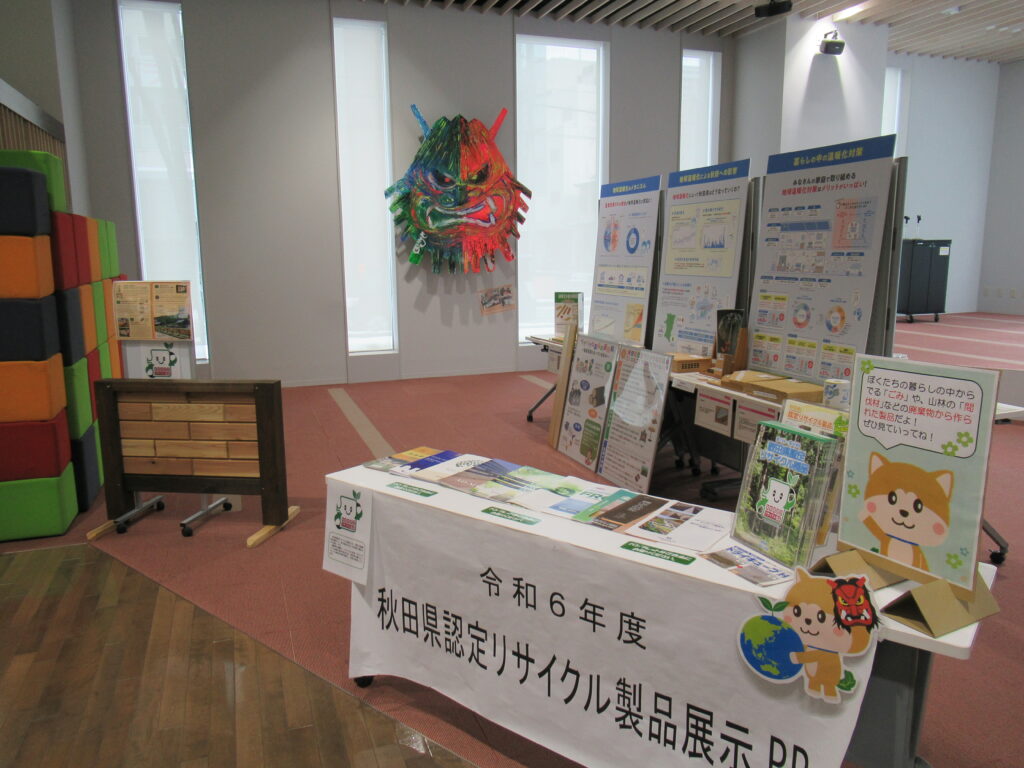 当センターでは、県からの委託を受け、今年度も秋田県認定リサイクル製品の展示を県内外で行いました。