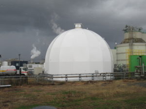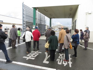 まず、事務所にて事業内容について説明と質疑応答をしていただきました。その後、秋田バイオガス発電所の受入設備やメタン発酵設備、ガス利用設備等を見学しました。当日は雨が降っていたため、主にバス内からの見学となってしまいましたが、それぞれの設備について丁寧に解説していただきました。