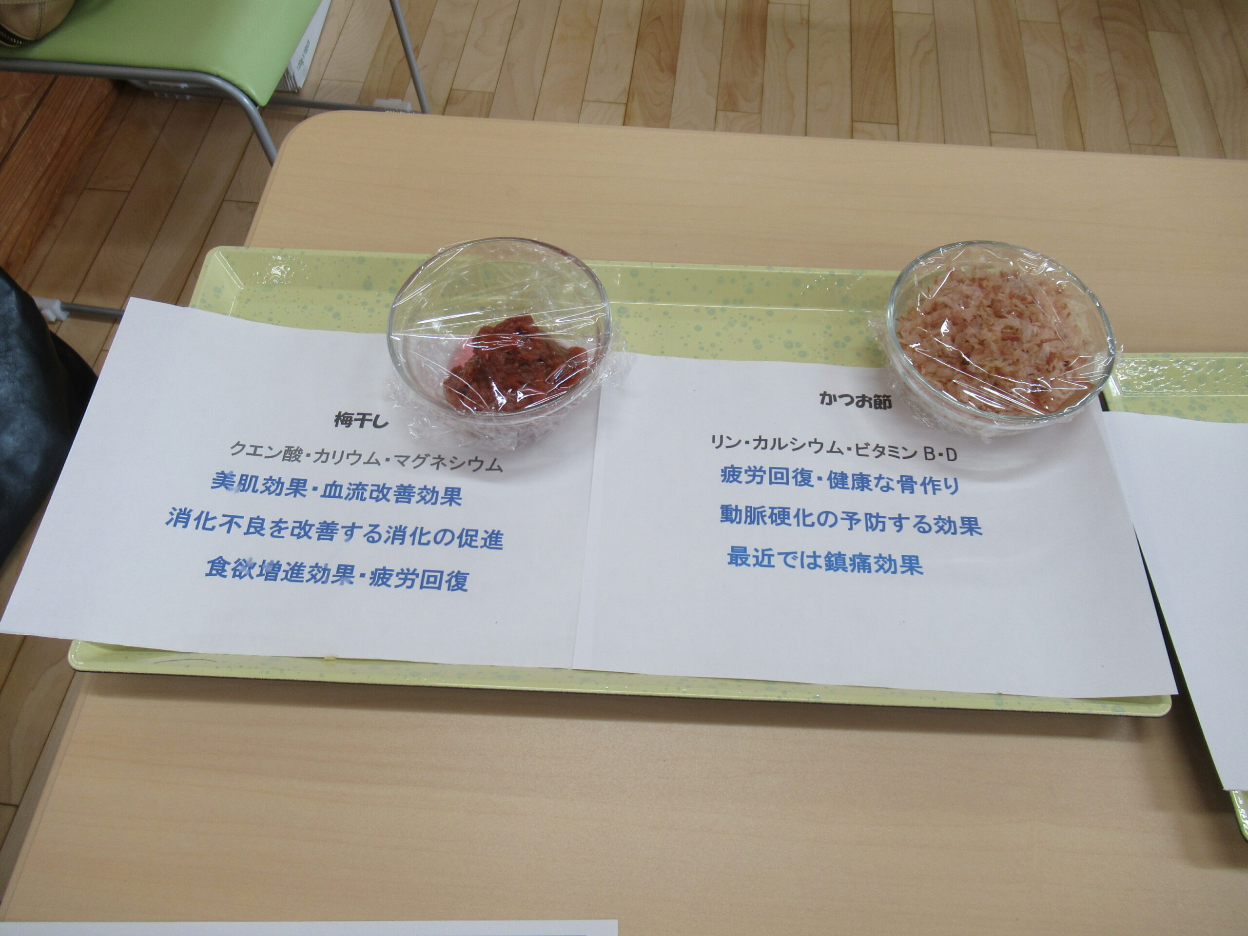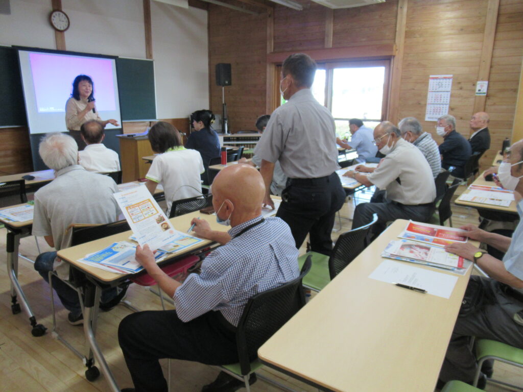 内容:夏の食生活の工夫に焦点を当て、夏バテの原因(栄養・睡眠不足、冷え、ミネラル不足など)と高齢者に多い症状(食欲不振、倦怠感)について解説しました。対策として、疲労回復に役立つタンパク質やビタミンB群などの栄養素と、具体的な食材・調理法を紹介。受講者と対話しながら献立例やおにぎり作りを提案し、試食も行いました。
