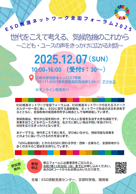 ESD(持続可能な開発のための教育)に関わる全国の学校・団体・企業などが一堂に集う「ESD推進ネットワーク全国フォーラム2025」が、今年も開催されます。