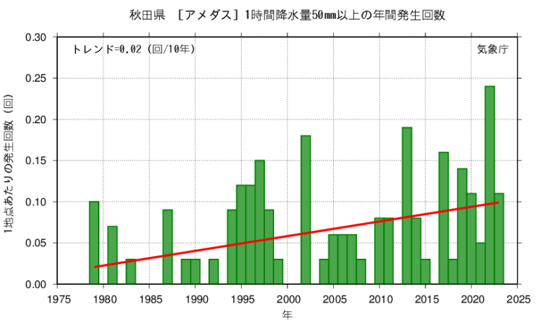 【秋田の1時間50mm以上の短時間強雨発生回数】