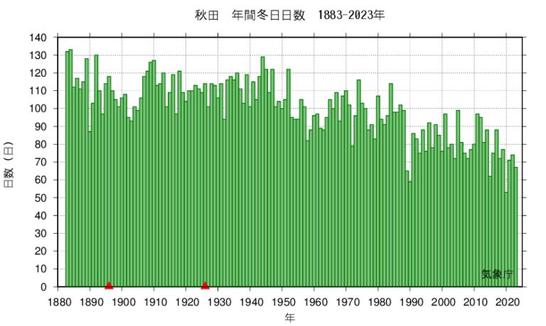 【秋田の冬日の日数の推移は?】