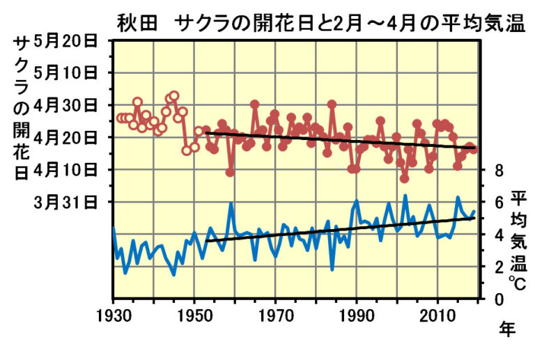 【秋田への影響➀ 桜の開花日の推移】